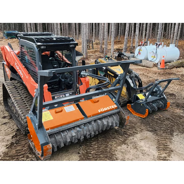 Лесной фронтальный мульчер FÖRSTER модели FM B предназначен для эффективной работы на минипогрузчиках с бортовым поворотом. Идеально подходит для профессионального использования на мощных носителях, требующих минимальной мощности 70 л.с. Мульчер способен измельчать деревья с диаметром до 20 см. В стандартной комплектации мульчер оснащен ротором с фиксированными двусторонними резцами типа B, имеющими твердосплавные напайки. Рекомендуется дополнительно укомплектовать ограничителями реза, что повысит производительность и снизит нагрузку на носитель. Все модели гидравлических мульчеров Forster обеспечены системой защиты от перегрузок HydroSmooth.